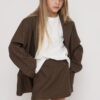 חצאית מכנס בגזרה מחמיאה וקלאסית בגוון חום. נוחה עם מראה מוקפד שילוב של נוחות וסטייל. בד איכותי ניתן לשלב עם הג׳קט התואם