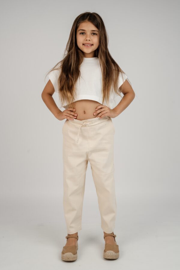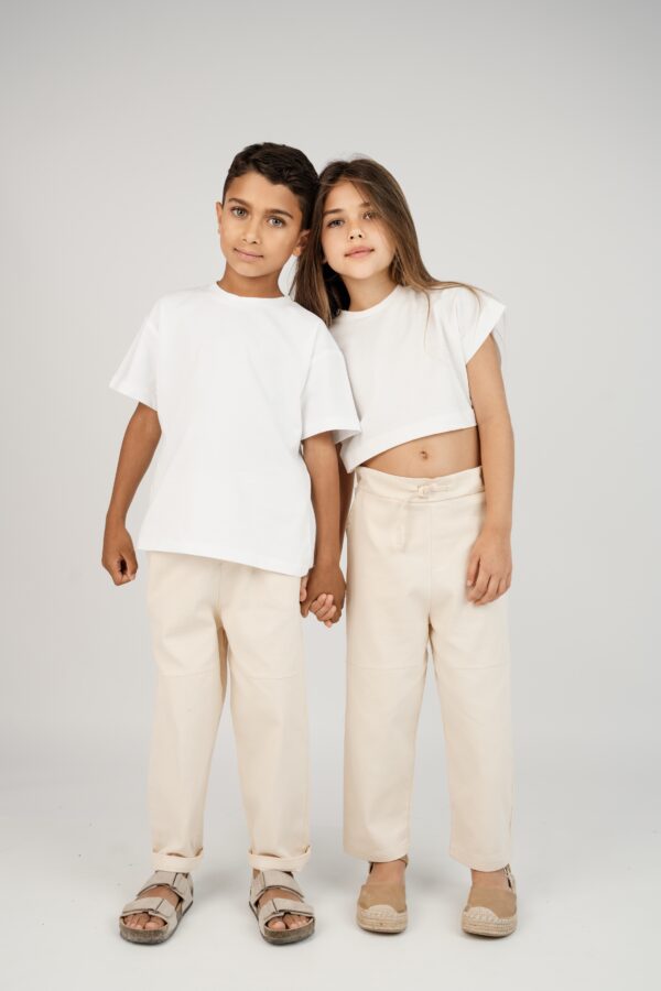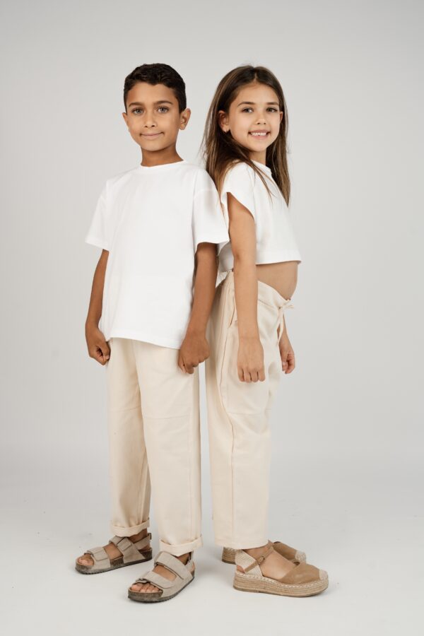 מכנס בסיסי לבנות – בגוונים שכל לוק צריךמכנס יומיומי לבנות בגזרה ישרה ונוחה, שמגיע בשני צבעים מושלמים – שחור קלאסי וטבעי נקי. עם גומי במותן, שרוך קשירה וכיסים צדדיים – בדיוק מה שצריך ללוק פרקטי עם סטייל.עשוי בד איכותי ונעים, לא עבה מדי אבל מחזיק יפה לאורך כל היום. מתאים ללבישה יומיומית בגן, לחוגים או ליציאות משפחתיות.איך ללבוש אותו?הגוונים משתלבים מעולה עם טי שירט חלקה או מודפסת, חולצת גופייה או סווטשירט דק בערב קיצי. שלבי עם סניקרס או סנדלים – ויש לך לוק מושלם.
